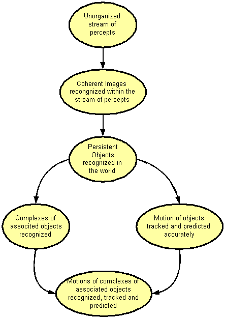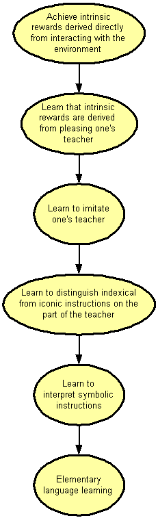 While the end goals for Novamente may be extremely sophisticated, we consider it important to define a series of progressively more difficult and complex goals, beginning with very simple ones. The goal series must be defined so that, with each goal Novamente learns to achieve, its “internal ontology” of learned cognitive procedures is appropriately enlarged.