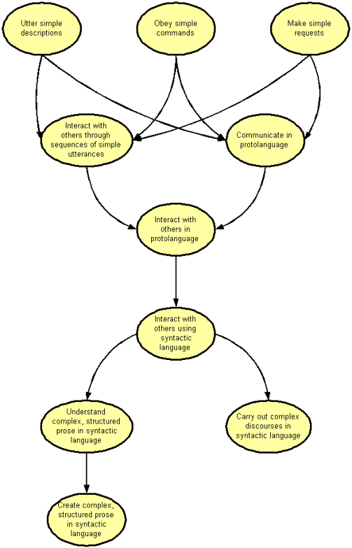 An interesting twist is that the “developmental stages” associated with a single functionality are not necessarily arrangeable in a simple linear ordering. Rather, the ordering of developmental stages may take the form of a directed acyclic graph (dag) rather than a simple series of steps. Different developmental subsequences may begin together, as a single sequence, and then branch off, sometimes reconverging. Further, these subsequences will often be interdependent.