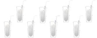 Two little drinks walking on a pencil.